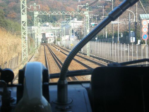 途中、三線軌道を体験。